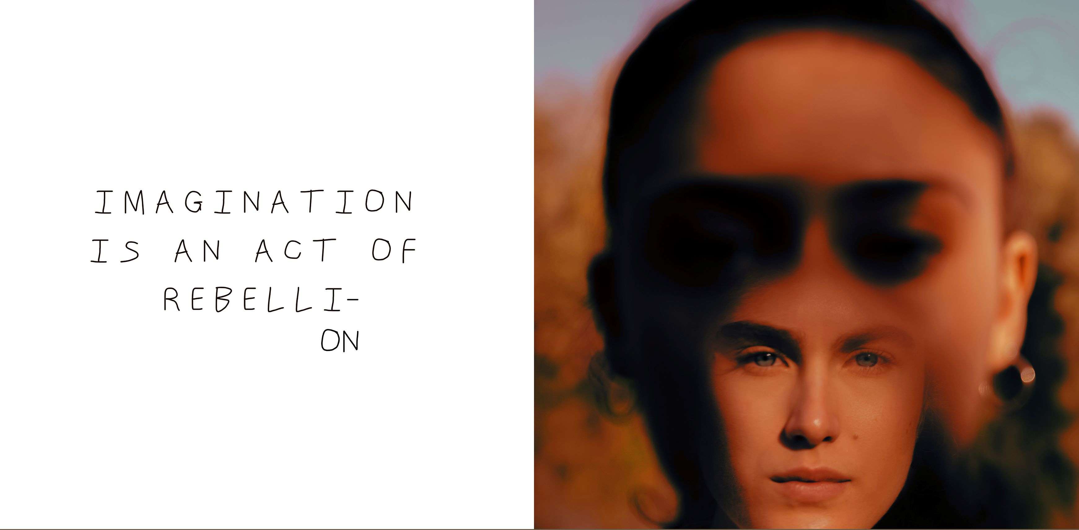 consapevole, contro corrente. Una forma di ribellione. Quale occasione migliore di oggi per costruire il nostro futuro?” Come le opere precedenti, anche questo manifesto si interroga sul cambiamento, sul mutamento, sulla trasformazione – anche difficile e faticosa, ma sempre stimolante – che stiamo attraversando in questi anni nella nostra vita collettiva e individuale. La fotografia viene individuata dall’autrice come il medium privilegiato per questa riflessione, con la sua capacità di essere manipolata e manipolabile all’infinito e al tempo stesso fedele al dato di realt à , e con la predisposizione a chiamare in causa le dimensioni dell’immaginazione e del sogno, per dare corpo, sostanza e visione alla ribellione creativa, non violenta ma esistenziale, che coinvolga le menti e i corpi, e che è così necessaria al mondo di oggi.